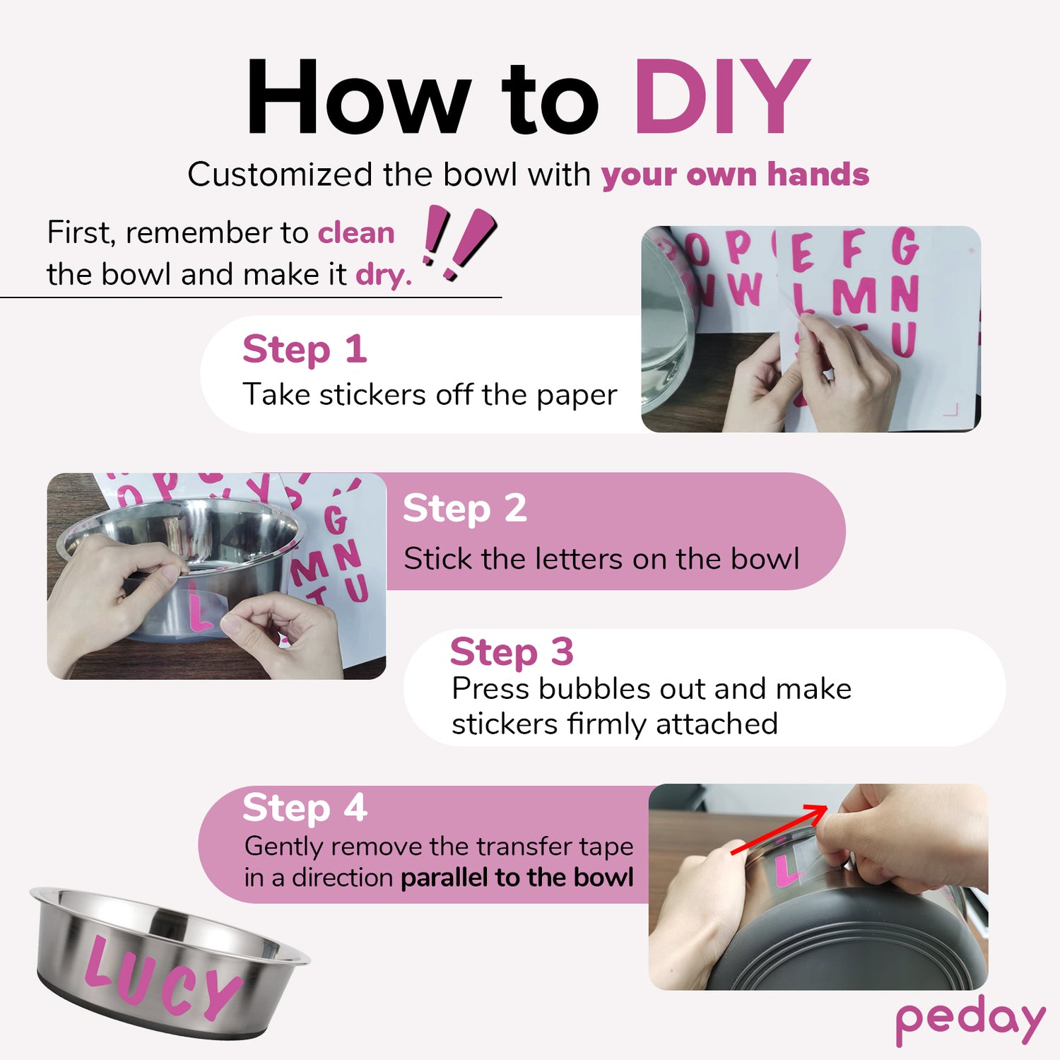 PEDAY Personalized Dog Bowl | Capital-Letter Stickers for DIY