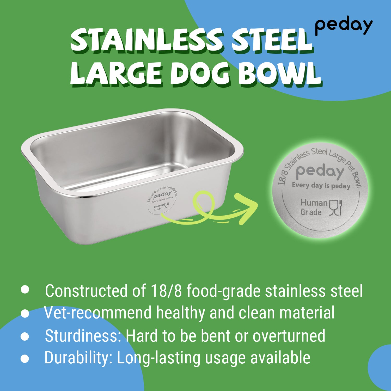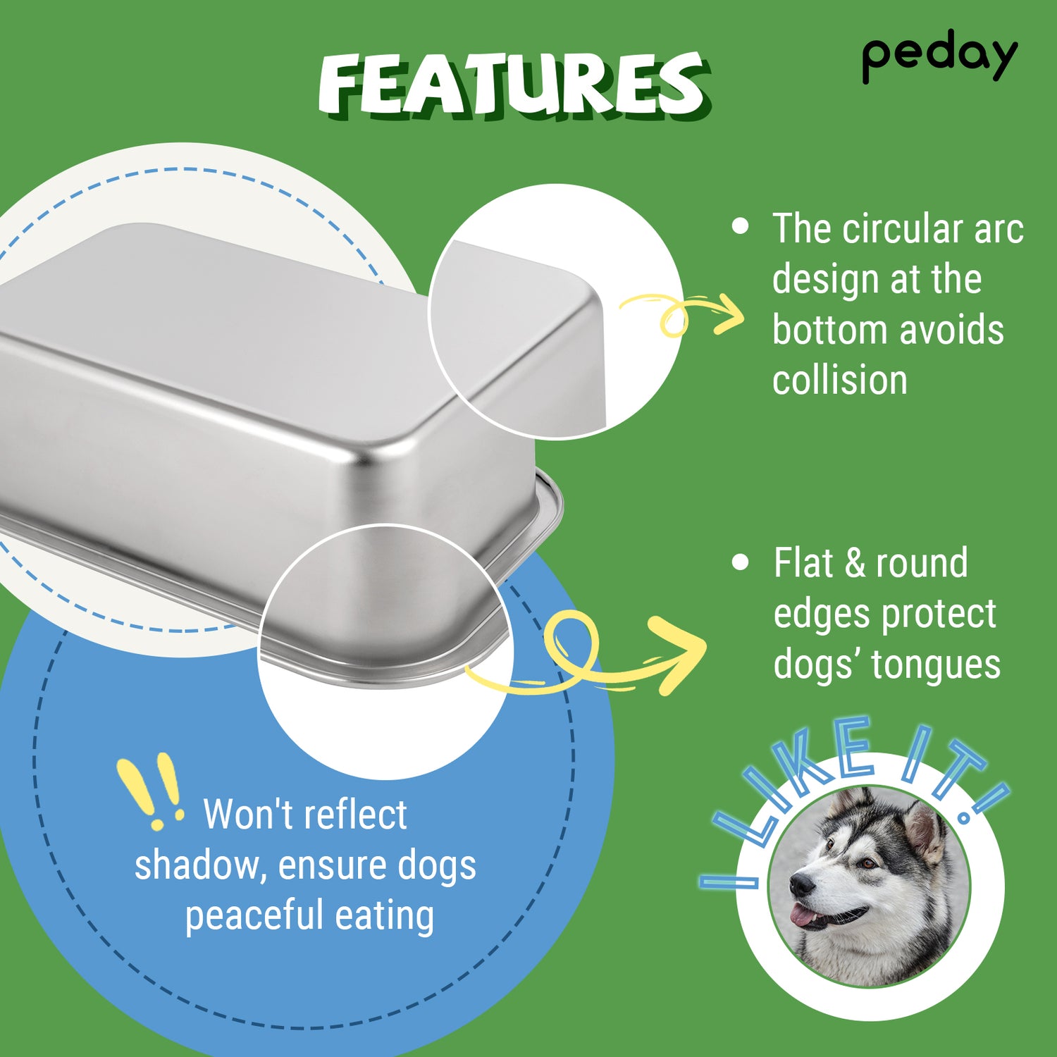 • Sturdiness & Durability. The widened rectangular structure is stable and not easy to crack. And we use food-grade stainless steel to make this bowl durable and rust-resistant, and it won’t be likely to get tipped over by naughty dogs
