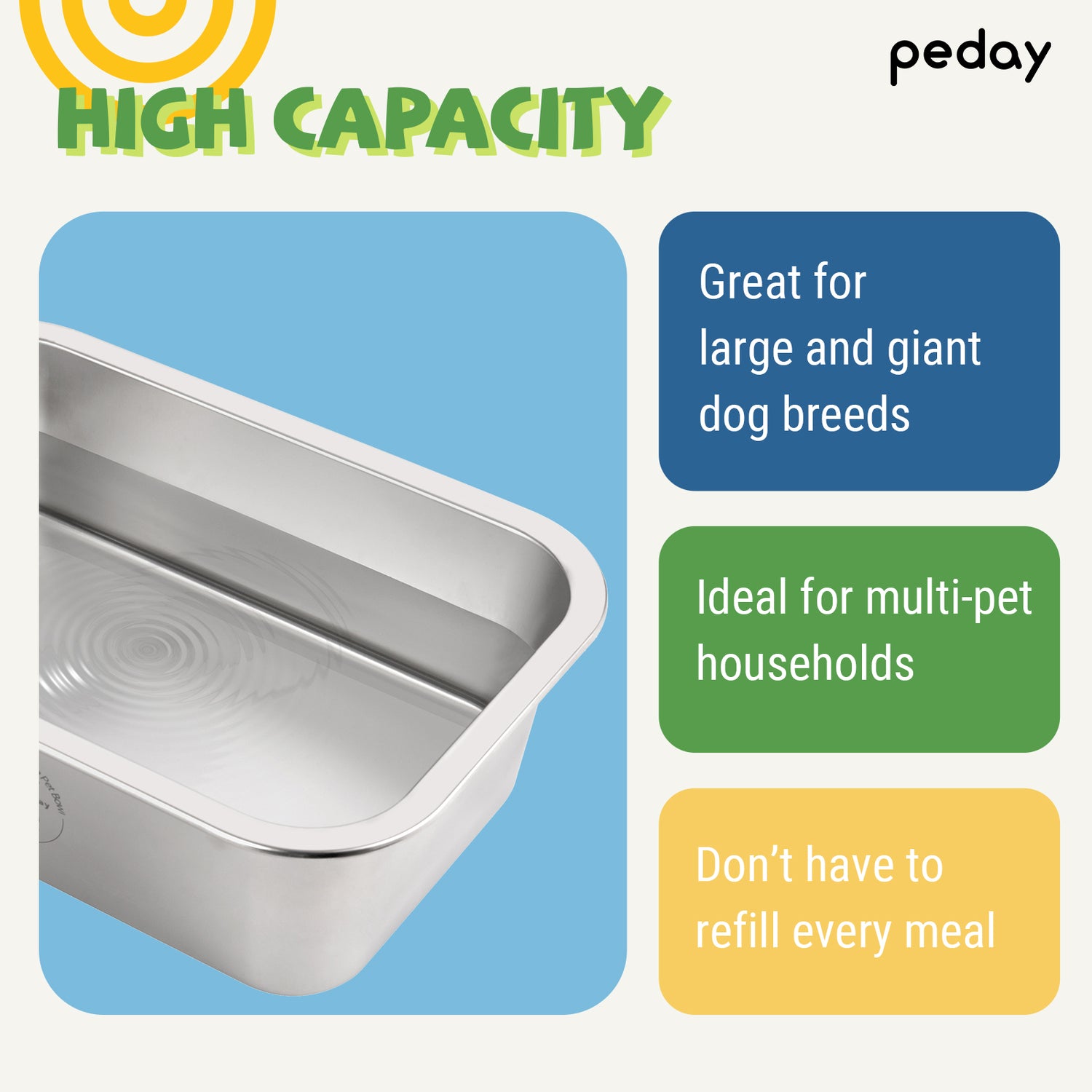 • Feature. An ordinary design? Of course not! The extended edges support lifting the bowl easily, making it convenient for you to move. The circular arc design at the corners can avoid collision and prevent food residua. Also, the large surface area of the bowl with a wide opening is available for dogs to eat together