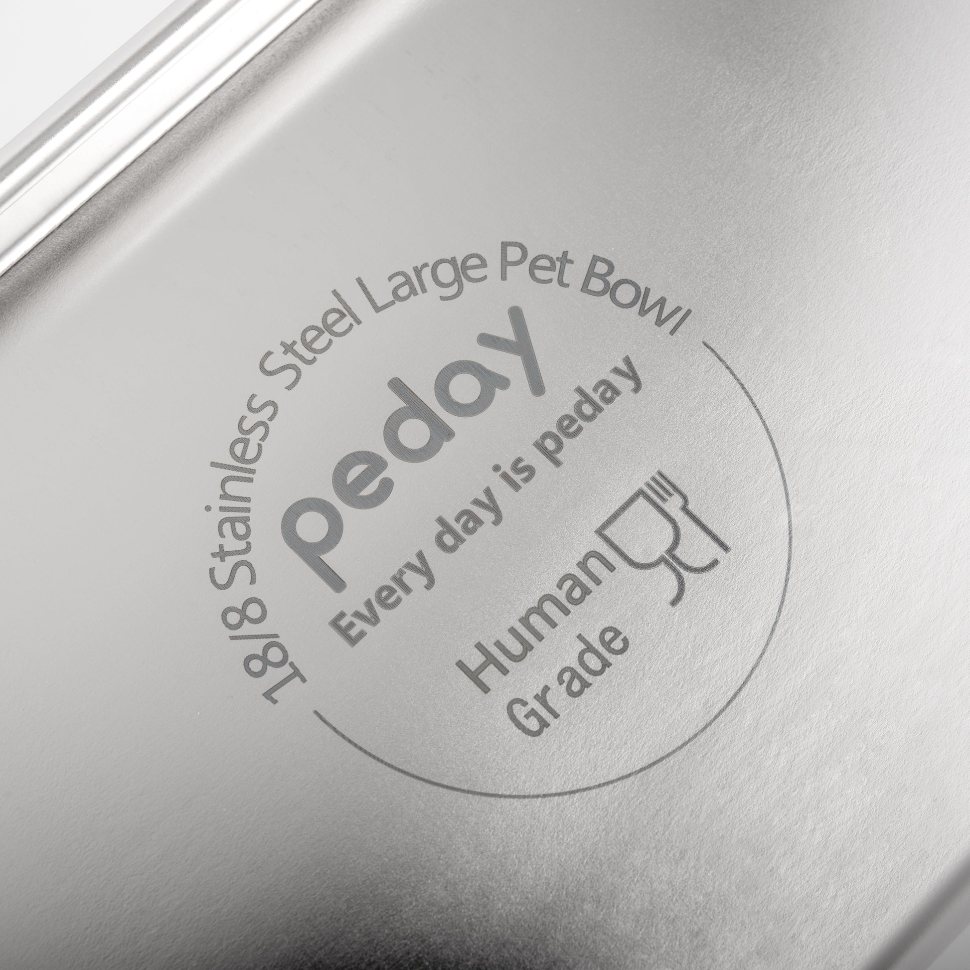 • Large Capacity. Look for a high-quality large dog bowl? Then don’t miss this one! Our stainless steel dog bowl is perfect for large and x-large dog breeds. The L dog bowl holds 1.2 US gallons (4550ml), and the XL one holds 2.64 US gallons (10000ml). Choose one that suits your dogs, and you will find that it can meet the daily use very well